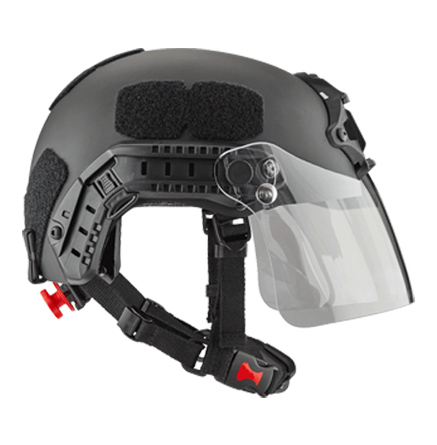 The Military Tactical Cougar Helmet is a lightweight, multi-role, carbon fibre helmet which can be used for a variety of operations including maritime boarding, method of entry, protestor removal, CBRN, rope access and search teams.