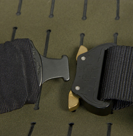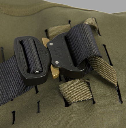 There is a handle to carry it and additional webbing in black or green color.