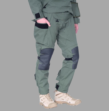 Both sides of suit’a pants are equipped by multi-functional cargo pockets which are stitched – pockets have pads with velcro fasteners for closing / opening.