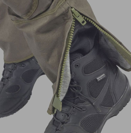 Critical areas like elbows, seat, knees are reinforced by pads made from polyamide fabric where additionally knee pads have inside special absorptive inserts.