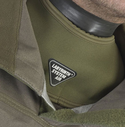 the entrance plastic gastight TIZIP zipper placed in diagonal way in front of torso enables user closing/opening in very easy way, where additionally the entrance zipper is protected by flap with Velcro fastener.