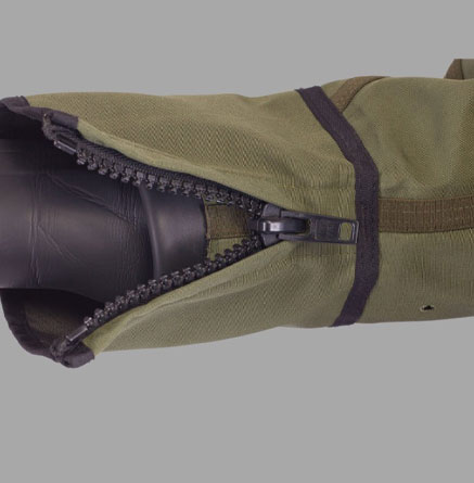 Two-parts construction performs specific requirements related to using of kayaks on water – dry-suit is consisted of trousers and blouse being connected by a special TZIP gastight plastic zipper located around waist which enables disattaching blouse from trousers.