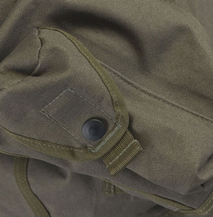 나토 그린 색상의 방수, 통기성 있는 ‘찢김방지’ 방염 폴리아미드 원단으로 제작되었으며, 방수/통기성 PU 멤브레인으로 적층 처리됨