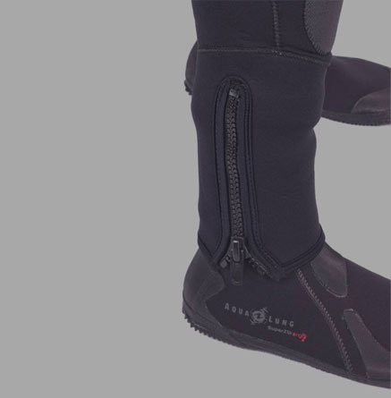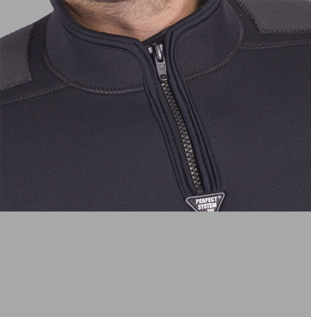 The suit is consisted of overall made from 5,0 mm neoprene and warming jacket made from 7,0 mm neoprene in black color.