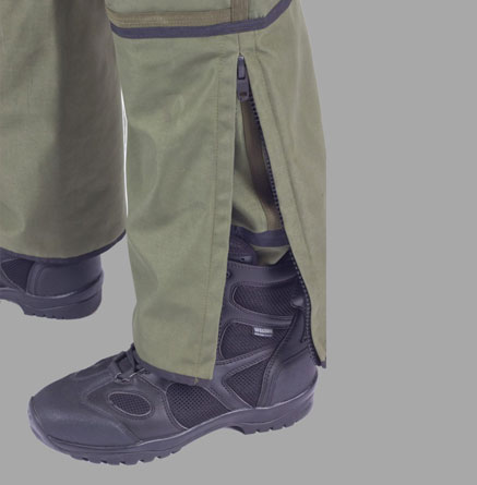바지에는 앞뒤로, 릴리프 스트랩이 있으며, 둘레를 조절할 수 있는 탄성로프가 장착됨
