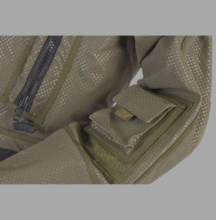 양쪽 팔뚝에 작은 포켓이 벨크로 플랫폼에 설치됨