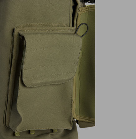 다리 앞부분에 설치된 두개의 수납용 포켓이 있으며, 클래식 Molle 시스템 스트랩에 설치됨