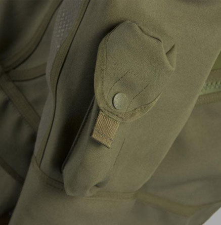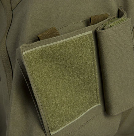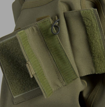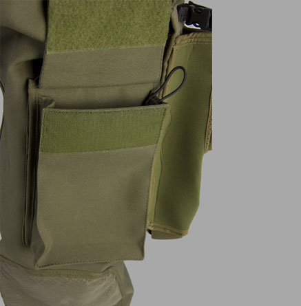 손과 다리 부분의 포켓은 강력 접착, 바느질, Molle 시스템으로 적용 가능